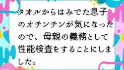 【ママスキ】タオルからはみでた息子のオチンチンが気になったので、母親の義務として性能検査をすることにしました。(d_671768)